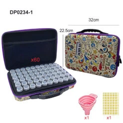 Aufbewahrungskoffer Mit Pop-Mustern 60 Runde FlÀschchen Freier Trichter Diamond Painting Zubehör